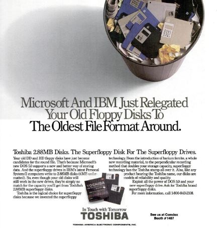 Most articles from the 1990s that I could find that discussed 2.88 megabyte floppies talked about even higher-capacity technologies on the horizon, and I think that’s what doomed the 2.88 megabyte format. Essentially, the format Osborned itself.